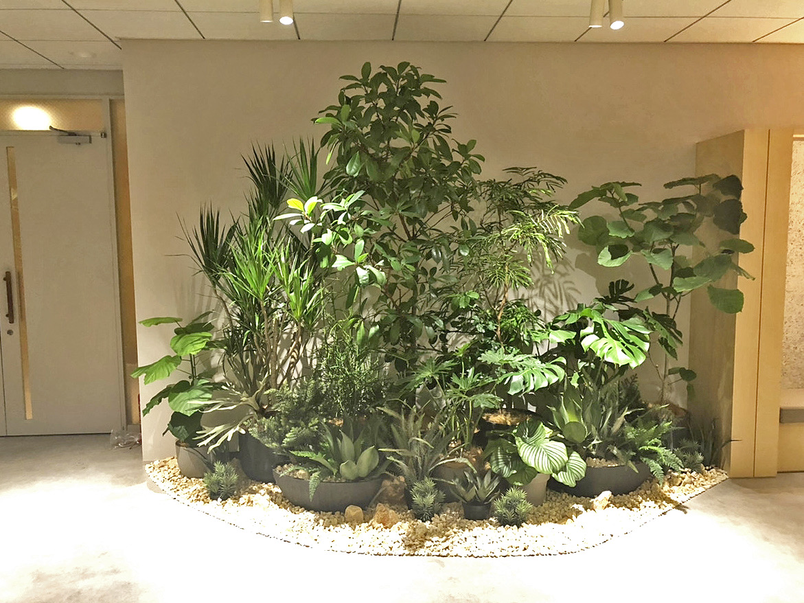 自宅勤務が増加し、オフィスに来る機会が減った場合も、フェイクグリーンならば手間をかけずに良い状態を保てます。